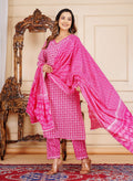 Floral Print 3/4 Sleeve Pink Color Pure Cotton Kurti