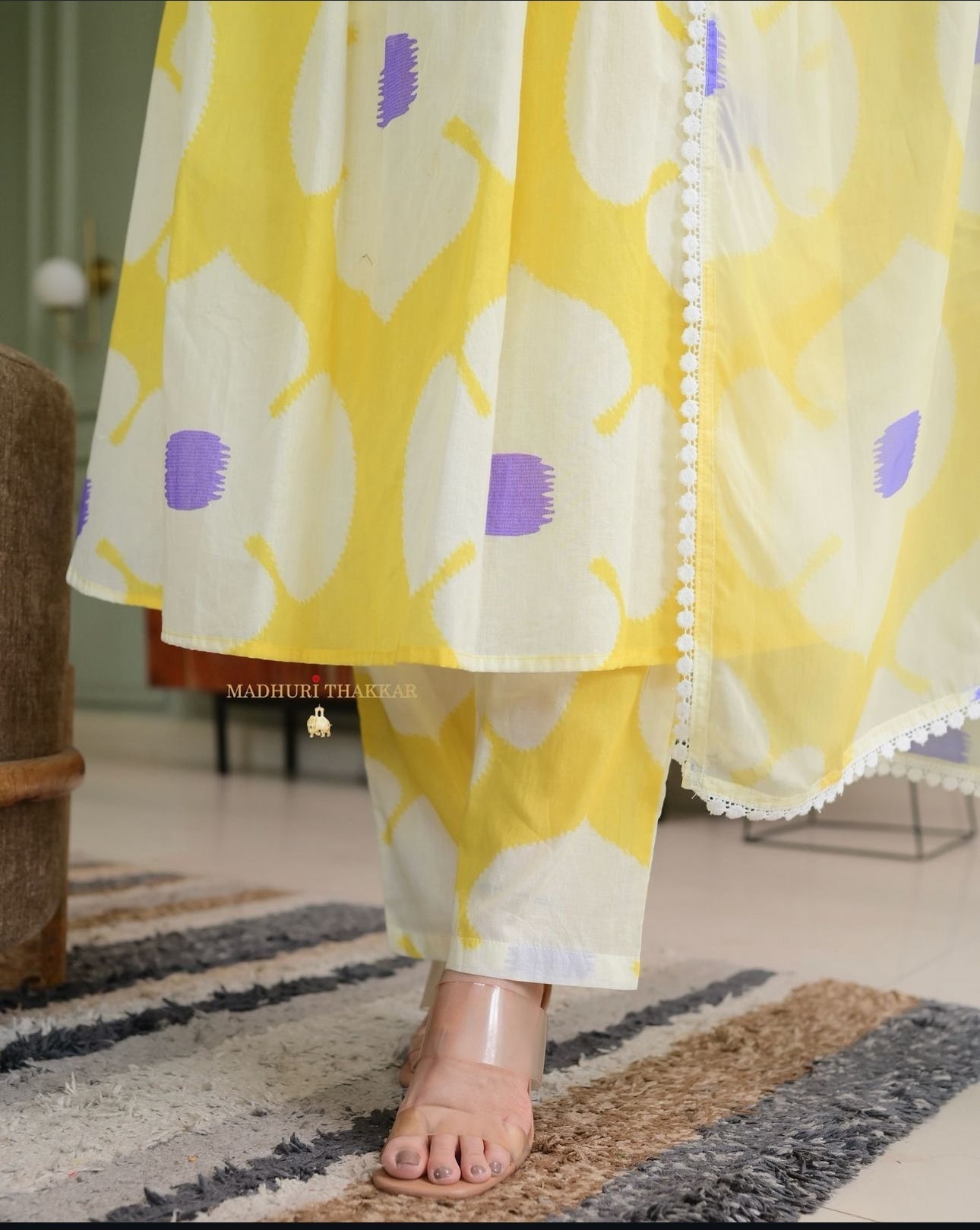 Womens Yellow Lilac Pintex Floral Cotton Suit